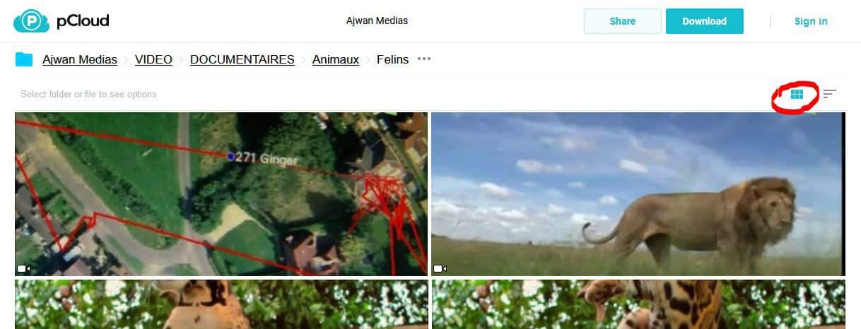 pCloud a prévu un bouton "Share" sur son interface. Sur l'image ci-dessous, je l'ai barré d'une croix rouge, pour rappeler la règle d'Ajwan Medias : ne pas partager le lien ![]()